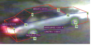 A computer program custom-made by grad student Alexandru Balan helped the class calibrate the wheelbase of the suspect’s car. That key piece of data, coupled with telling details like headlight shape, body contour, and license plate position, led the class to a strong conclusion. The car is a Toyota Camry. It was made in 1992, 1993, or 1994. It has a sunroof wrapped in a wind deflector.