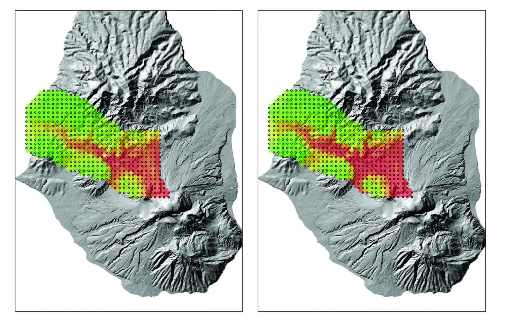 One of the major hazards of volcanic activity is inundation by debris flows, block and ash flows, and hot pyroclastic flows. These can run out many kilometers, travelling at speeds of 50 m/sec or more. A challenge for volcanology is to predict the chances of a flow inundating a specific location – that is, what areas are at risk of suffering a hazardous flow event.