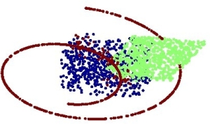 IMA postdoc Gloria Haro together with IMA long term visitors Gregory Randall and Guillermo Sapiro have proposed a technique for stratification learning . The method is based on a mixture of Poisson distributions that locally model the counting process of points in the different manifolds. Their technique automatically gives a soft clustering of the point cloud according to dimensionality and density, with an estimation of both quantities for each class. The figure below illustrate two applications of the technique in computer vision, first to the recognition of digits, and second to the classification of activities recorded in a video.