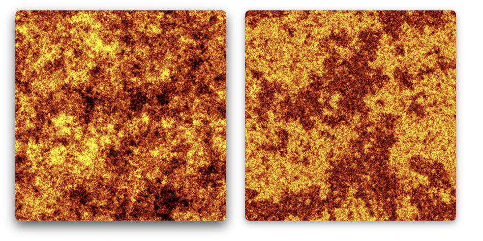 “As mathematicians, we don’t usually come up with new models, that’s more the physicists’ job, said Dr. Hairer. Rather, in this context mathematicians “provide a guarantee that the approximation coded into the computer is actually approximating something, that there is a well-defined limiting mathematical object behind it,” he said. slmath-SPDE-f1-and-f2.png953.72 KBFigure 1 and Figure 2: Snapshots of two different computer-generated random fields obtained from solutions to stochastic partial differential equations (SPDEs). Figure 1 shows an instance of the “free field,” the natural scaling limit obtained from uniformly random continuous functions. Figure 2 shows a snapshot of the “phi-four field” which describes, for example, the behavior of a magnet near its critical temperature — it looks like the free field at small scales but differs at large scales by forming large clusters of similar values. The question of whether a single snapshot (of infinite resolution) can distinguish between these two fields with absolute certainty is closely related to the question of glueing together quantum field theories in adjacent patches of space-time. CREDIT: Martin Hairer